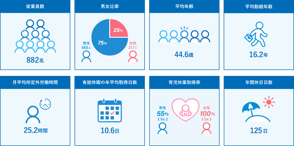 人生の様々なイベント時の、祝金の総額や特別休暇日数など充実しており、従業員の皆さまの人生の節目に支援を行い続けていきます。